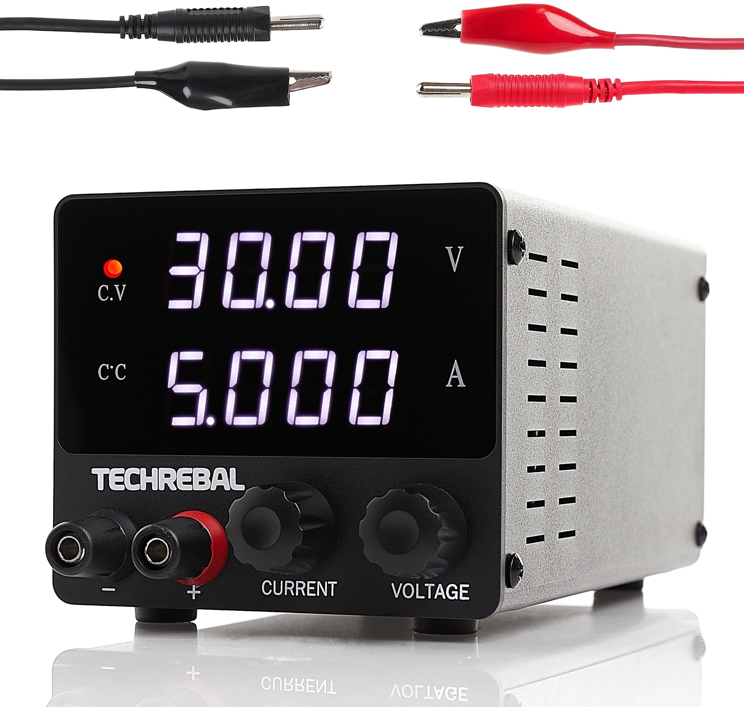 W zestawie znajduje się zasilacz laboratoryjny Techrebal SPS-F305, który oferuje precyzyjnie regulowane napięcie wyjściowe w zakresie od 0 do 30V oraz maksymalną wydajność prądową wynoszącą 5A. Solidna konstrukcja oraz system zabezpieczeń sprawiają, że jest to niezawodne narzędzie w każdym serwisie.