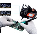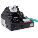 Stacja lutownicza wyróżnia się solidną konstrukcją oraz nowoczesnym wyglądem. Jej kompaktowe wymiary sprawiają, że zajmuje mało miejsca na stanowisku pracy, a ergonomiczne rozmieszczenie elementów sterujących podnosi komfort użytkowania.
