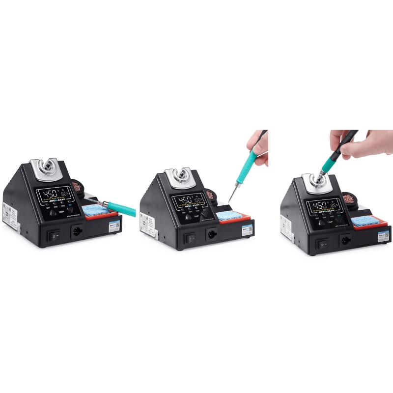 Urządzenie oferuje możliwość regulacji temperatury w zakresie od 100°C do 450°C, co pozwala na dostosowanie parametrów pracy do różnych materiałów i zastosowań. Użytkownicy mogą precyzyjnie ustawić temperaturę co 1°C, co zwiększa kontrolę nad procesem lutowania.