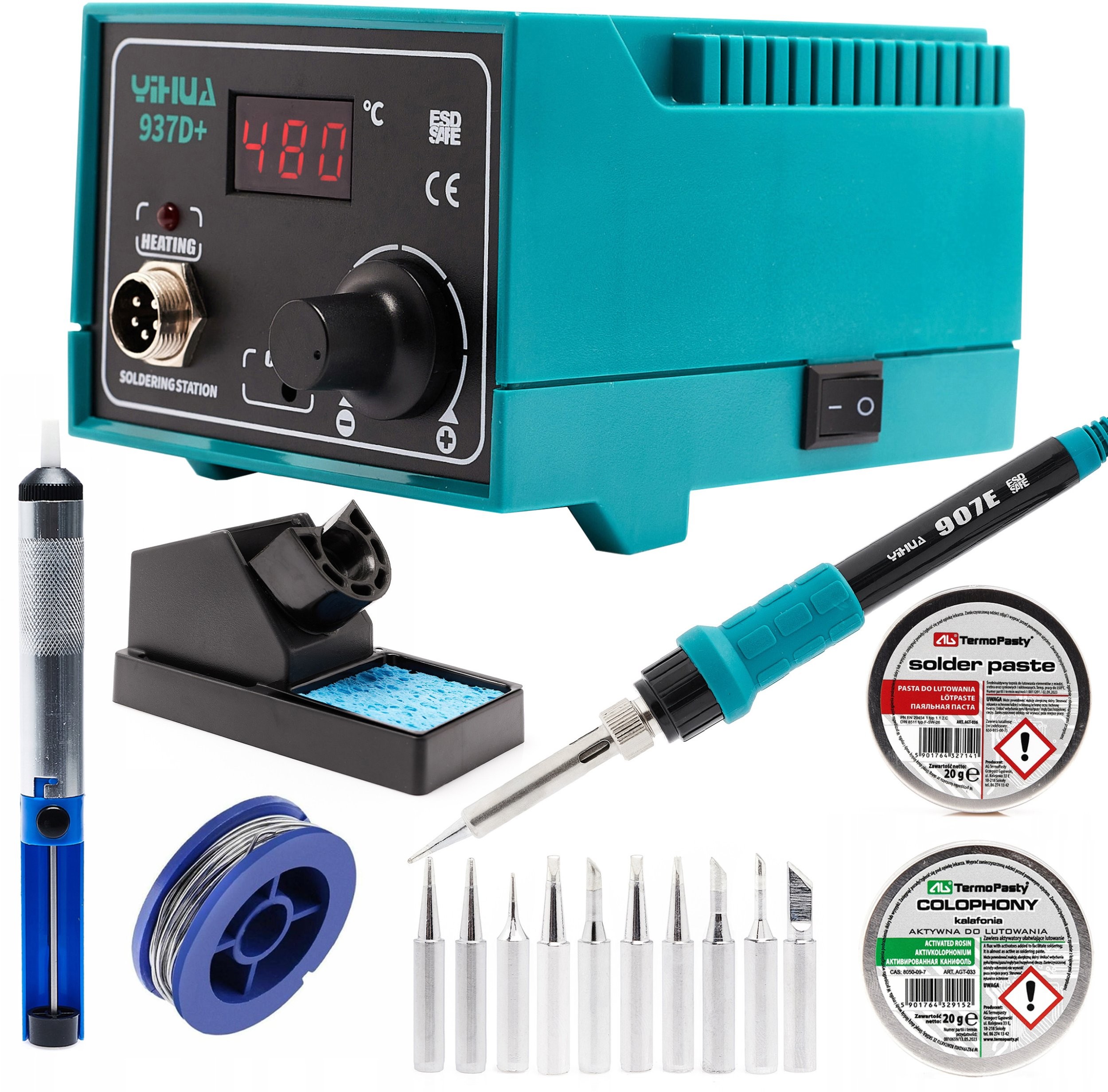 Zestaw Stacja Lutownicza Yihua 937D+ Kalafonia Pasta Cyna Odsysacz 10x Groty
