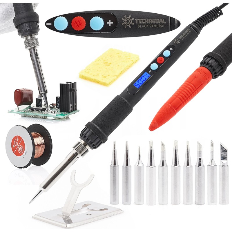 Kompletny zestaw do precyzyjnych prac lutowniczych, idealny dla profesjonalistów i hobbystów. W zestawie znajduje się precyzyjna lutownica Techrebal ”Shadow Warrior” TBS60W z wyświetlaczem oraz niezbędne akcesoria jak np. 10 dodatkowych grotów, cyna i drut miedziany. Idealny zestaw do używania w warsztacie.