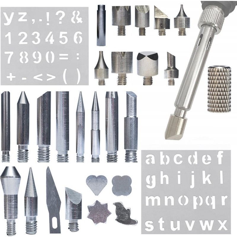 Rosfix Zestaw 30 elementów do wypalania drewna ( 27 grotów, adapter 900M , 2 szablony)