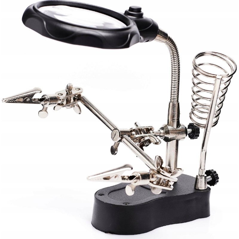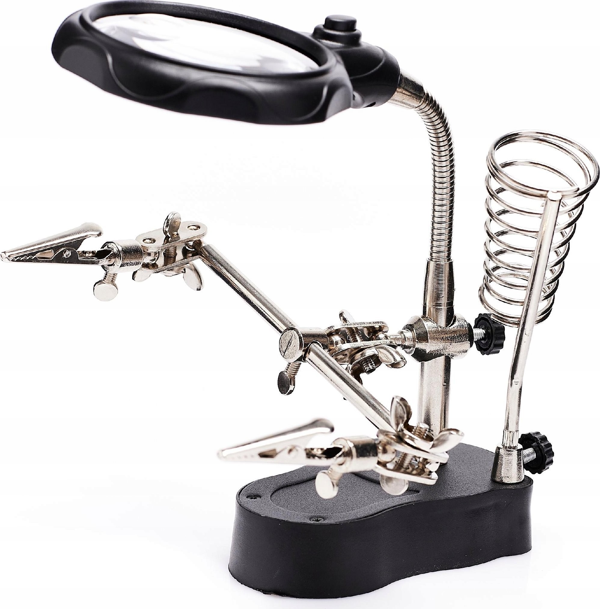 Uchwyt montażowy z lupą, podświetleniem LED, oraz uchwytem na lutownice