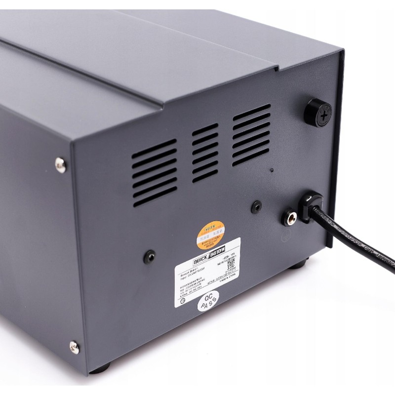 - Stacja lutownicza Quick 861DW ESD ze zintegrowaną kolbą na elastycznym przewodzie i ze zintegrowanym przewodem zasilającym
