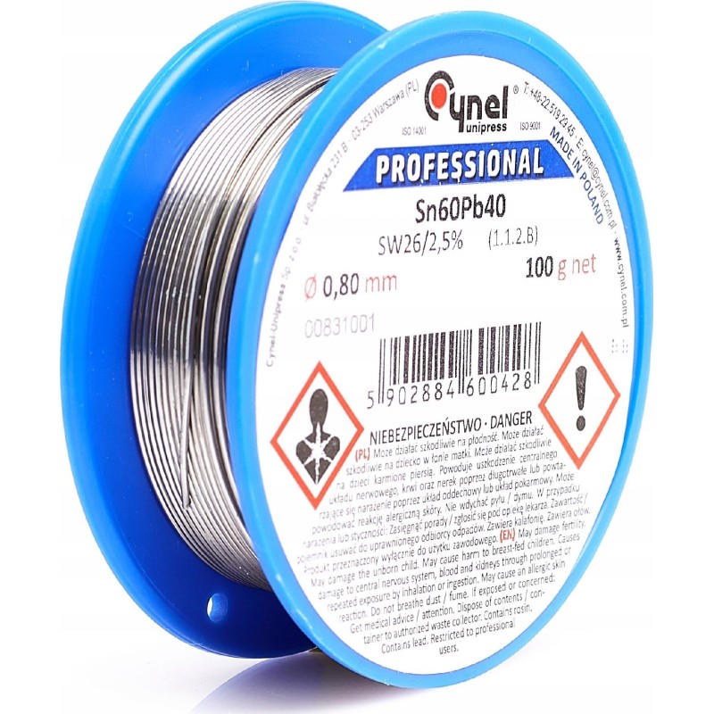 Cyna lutownicza z topnikiem Sn60Pb40 0,80mm 100g Cynel