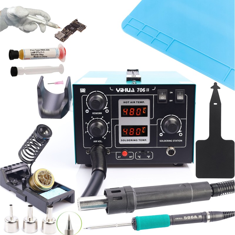 Profesjonalny zestaw lutowniczy 2w1 Hot-Air + system T12 Yihua 706 II