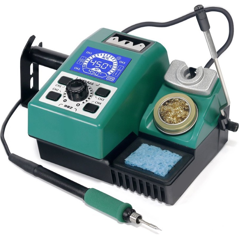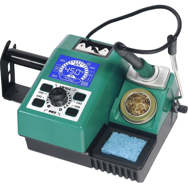 - Precyzyjna stacja lutownicza Yihua 982 na groty z wbudowaną grzałką T210 z podstawką na kolbę z gąbką do czyszczenia grotu oraz metalowymi wiórkami