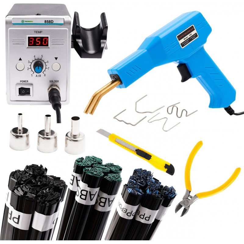 Stacja Lutownicza Hot-Air TECHREBAL 858D + zszywacz do plastiku + 200 zszywek, nożyk, szczypce + spoiwa