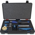 W zestawie 3 wymienne końcówki oraz charakteryzuje się ergonomicznym uchwytem, wbudowanym światłem LED, wyłącznikiem bezpieczeństwa, zabezpieczeniem przed przeładowaniem lub nadmiernym rozładowaniem, zwarciem, ESD (wyładowaniem elektrostatycznym). Lutownica posiada CE wg. norm EMC, EN62133 oraz znajduje się na liście wyrobów UL (organizacja bezpieczeństwa).