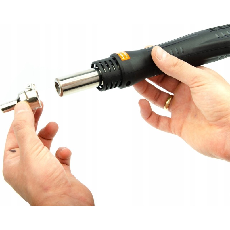 Stacja jest dostarczana z zestawem trzech różnych dysz, które umożliwiają zróżnicowane zastosowania, nadają się zarówno do spawania plastiku jak i lutowania układów.