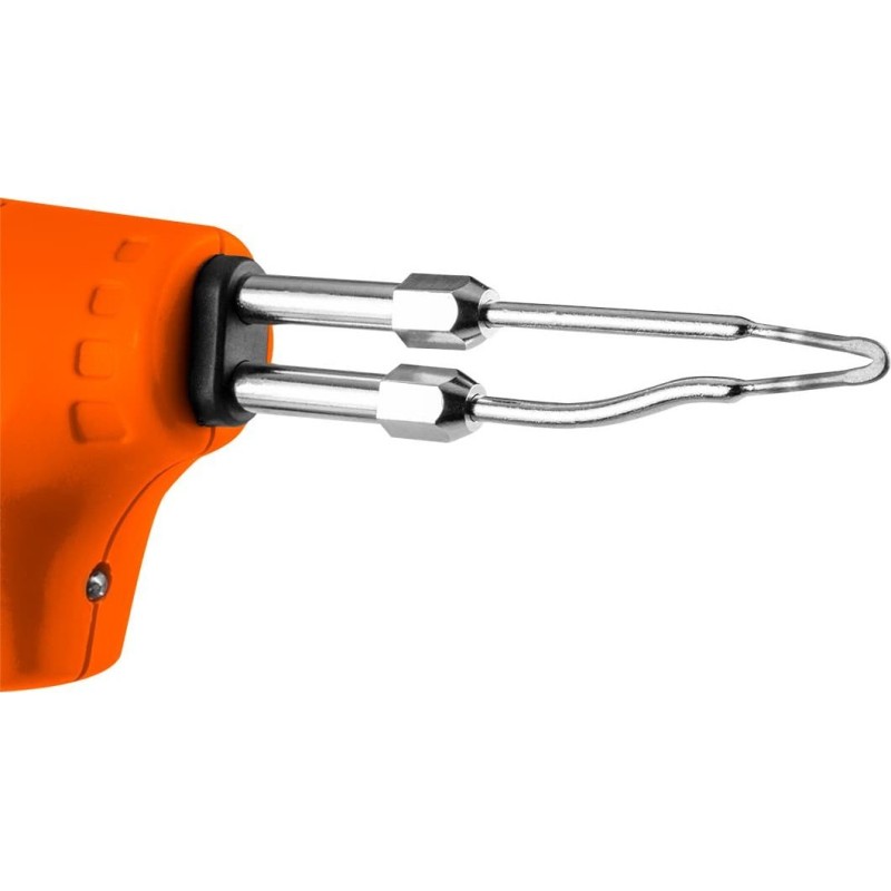 Lutownica transformatorowa marki NEO o mocy 200 W dedykowana jest zawodowcom oraz majsterkowiczom, którzy poszukują niewielkiego urządzenia o dużych możliwościach. Lutownica posiada funkcję wymiany grotów oraz system szybkiego nagrzewania. Możliwość regulacji temperatury w trzech obszarach (od 70-500 °C) przeznaczona jest do trzech typów prac – cięcia polipianu, standardowego lutowania oraz działań z drewnem. Urządzenie ma ergonomiczny kształt i pewnie leży w dłoniach.