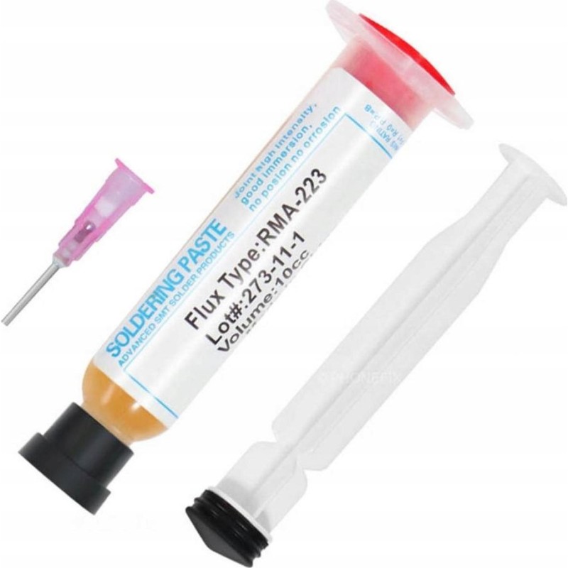 7️⃣ Rosfix Topnik flux lutowniczy RMA-223 z tłoczkiem i igłą: wysokiej jakości flux, wyposażony w praktyczne narzędzia ułatwiające precyzyjne i skuteczne aplikowanie, idealny dla profesjonalistów i entuzjastów elektroniki.