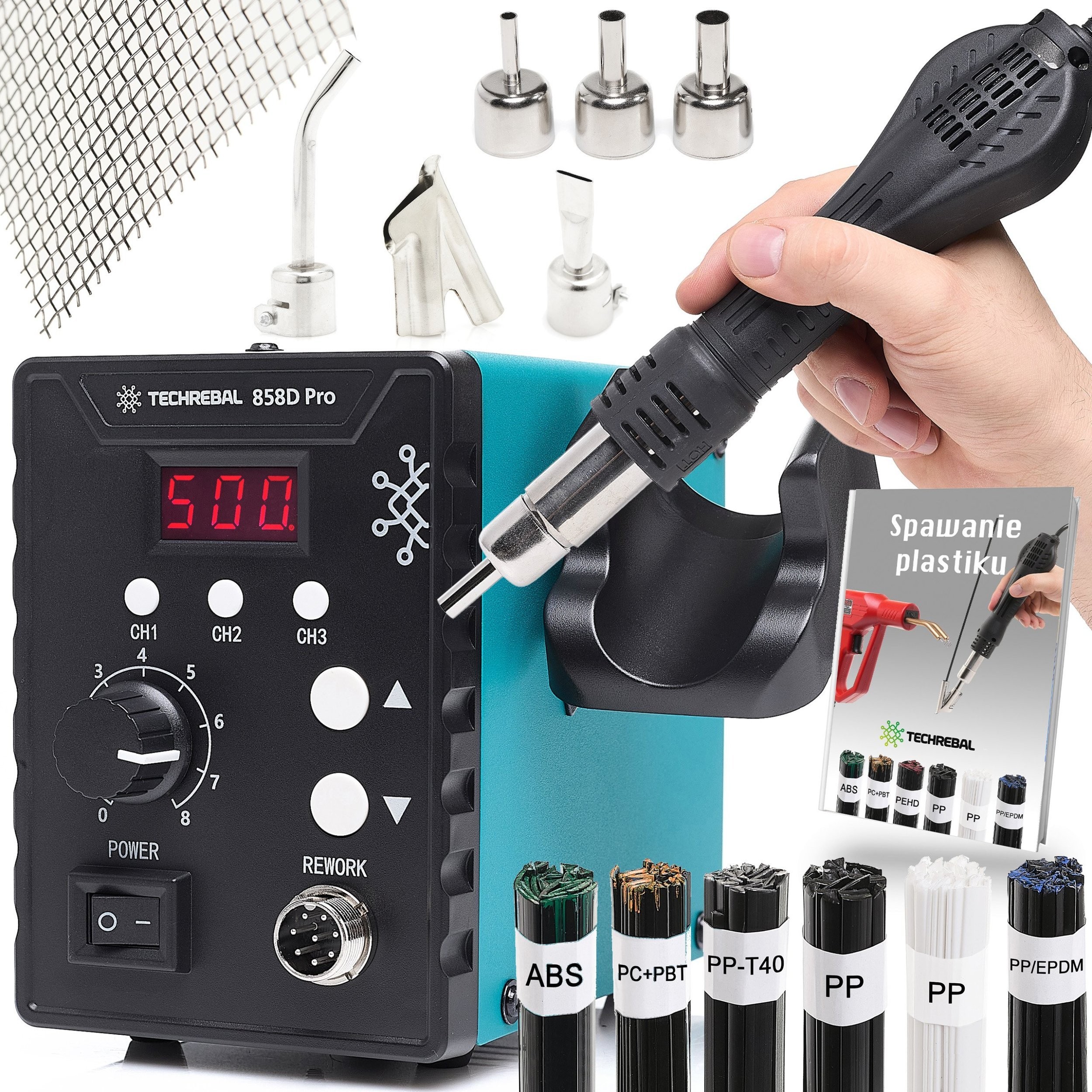 Spawarka Plastiku Stacja Lutownicza Hot-Air TECHREBAL 858D Pro Zestaw 6 Spoiw 6 Dysz