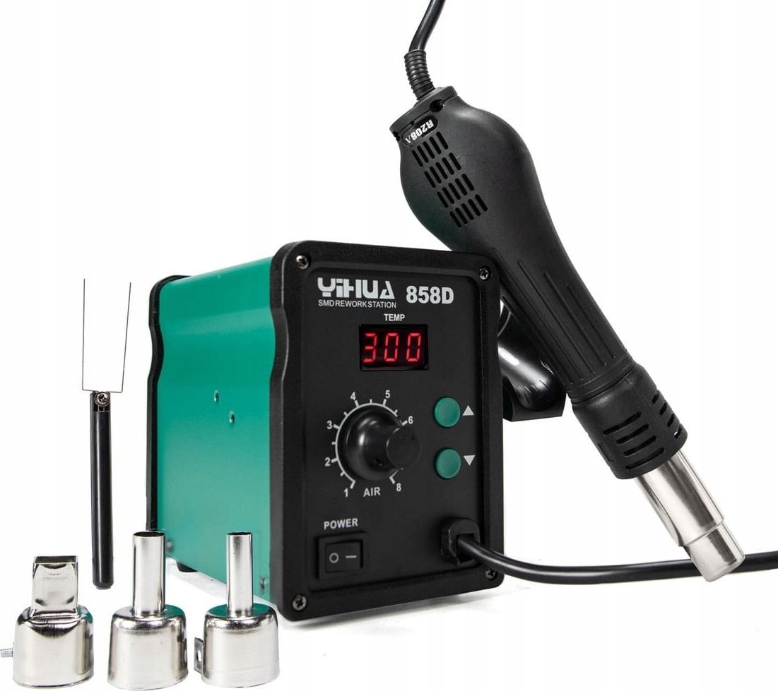 Długotrwała żywotność, kompaktowe rozmiary, regulowana temperatura i prosta obsługa – to wszystko sprawia, że stacja lutownicza hotair Yihua 858D to solidny wybór, który zaspokoi nawet najbardziej wymagające potrzeby. Zainwestuj w profesjonalne narzędzie, które spełni oczekiwania nawet najbardziej wymagających użytkowników. Zamów Stację Lutowniczą Yihua 858D już dziś i doświadcz precyzji oraz wydajności na najwyższym poziomie.