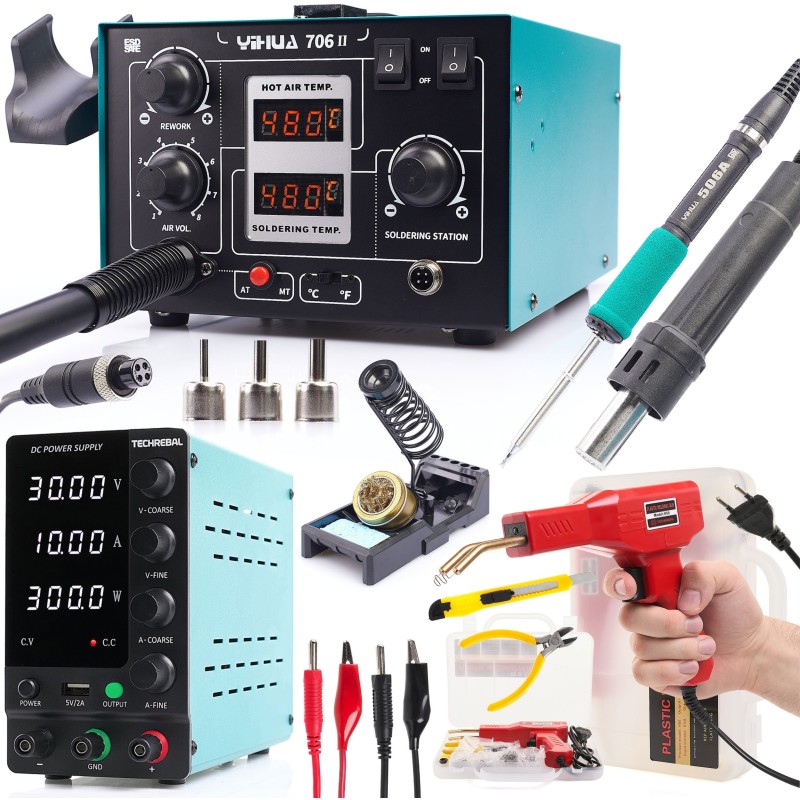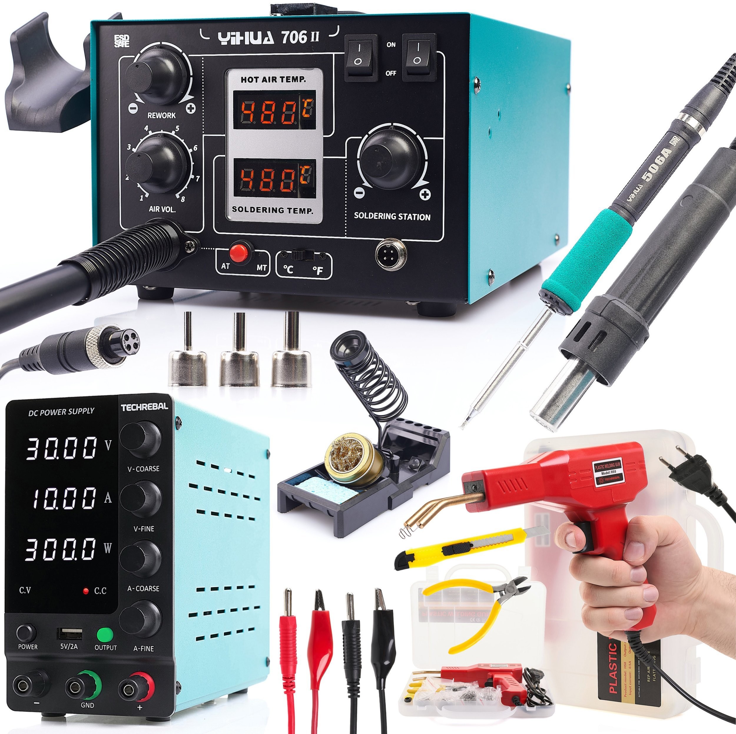 Stacja Lutownicza Hot Air Lutownica 706 II Zszywacz Zszywki Zasilacz 30V 5A