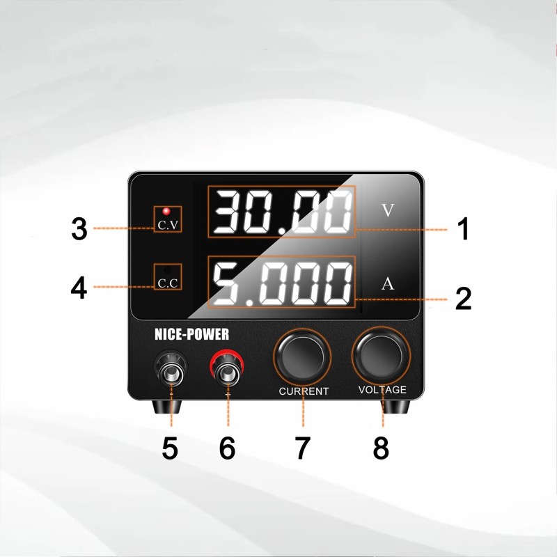 - Zakres prądu wyjściowego zasilacza: 0-5 A