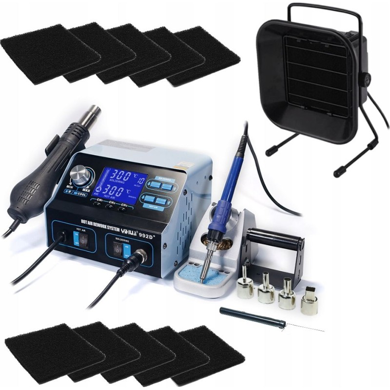 Stacja lutownicza Hot-Air YIHUA 992D+ FAN + Profesjonalny serwisowy pochłaniacz dymu 493 + 11 filtrów