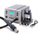 Profesjonalna stacja lutownicza na gorące powietrze (hotair) o mocy 1000W . Urządzenie przeznaczone dla profesjonalistów, posiada precyzyjną regulację temperatury w zakresie 100-500°C z zastosowaniem czujnika temperatury w zamkniętej pętli. Urządzenie o bardzo dużej mocy, dzięki czemu do minimum skrócono czas nagrzewania, dodatkowo wyposażoną ją w system automatycznego chłodzenia, który chroni element grzejny. Wygodny czytelny wyświetlacz z podświetlonym tłem. Stacja z możliwością zapamiętania 3 ustawień, dzięki pamięci (kanały - CH1,CH2,CH3) maszyna zapamiętuje ustawienia temperatury, oraz przepływu powietrza.