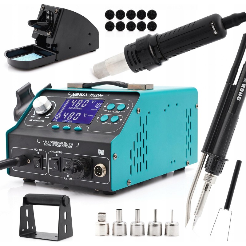 Stacja lutownicza 4w1 Yihua 992DA+ 720W z wyciągiem oparów i kompresorem + zestaw grot+