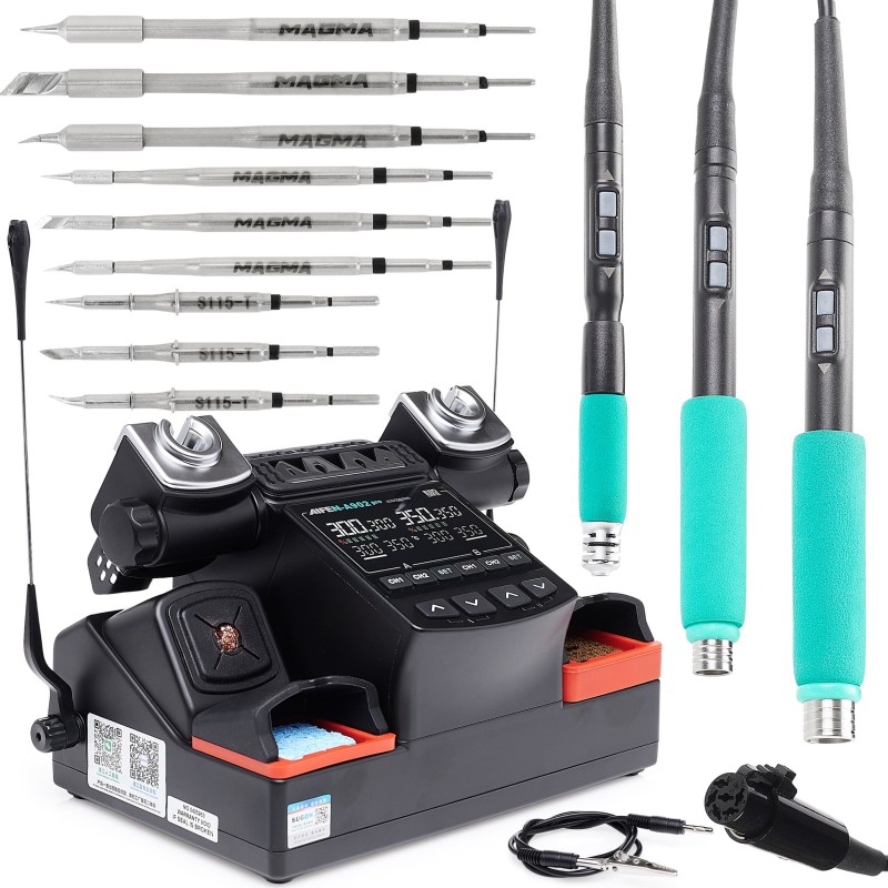 Dwukanałowa budowa stacji lutowniczej Aifen A902 Pro umożliwia jednoczesne korzystanie z dwóch kolb, co znacząco zwiększa wydajność pracy. Użytkownicy mogą swobodnie przełączać się między różnymi technikami lutowania, nie przerywając pracy, co jest niezwykle wygodne i oszczędza czas.