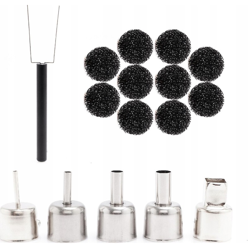 - Komplet dysz:okrągła o średnicy 2,5 mmokrągła o średnicy 4,4 mmokrągła o średnicy 6 mmokrągła o średnicy 9 mmkwadratowa 12x12 mm