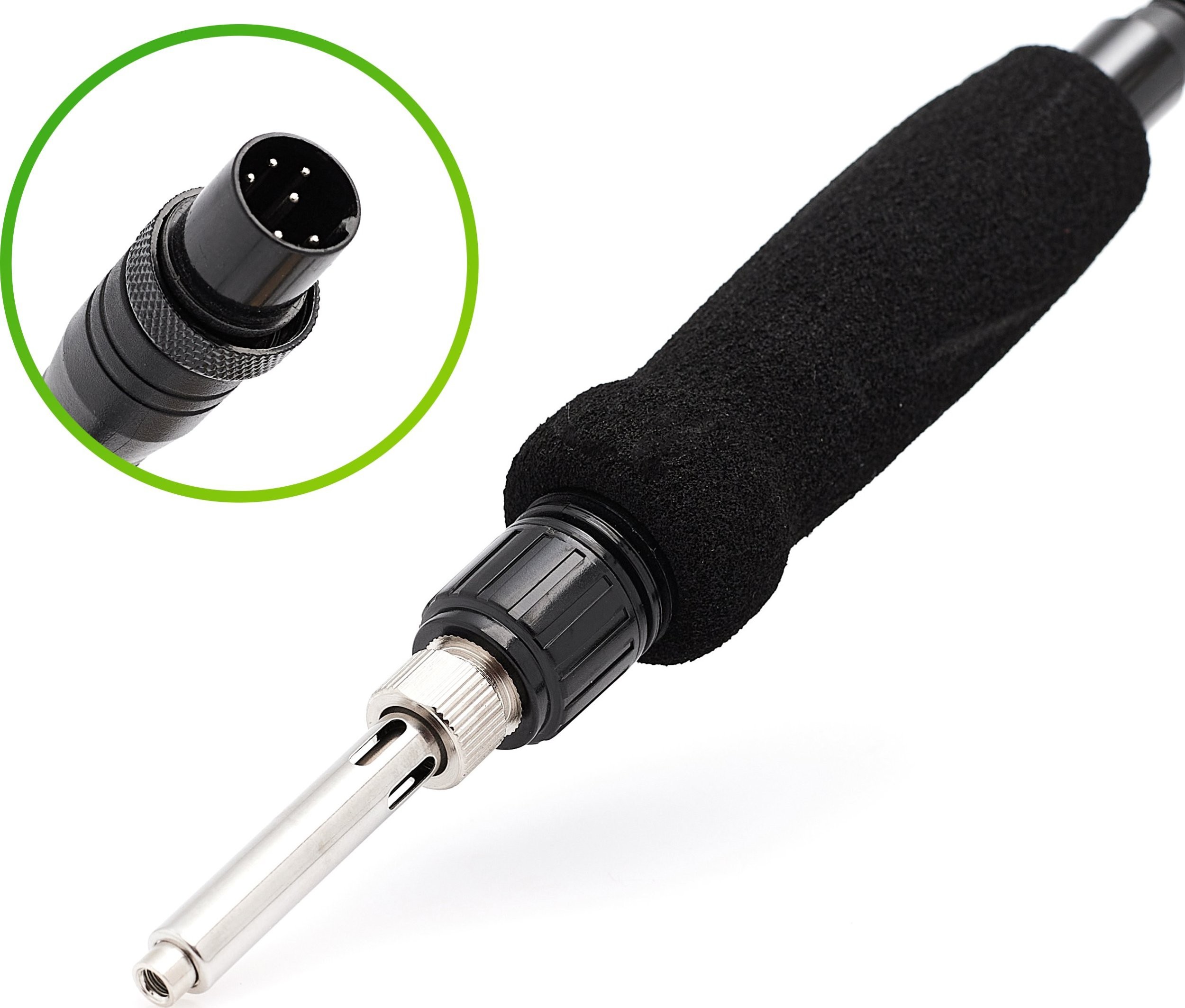 Lutownica korzysta z bardzo wydajnej grzałki, dlatego doskonale sprawdzi się do lutowania podzespołów elektronicznych.