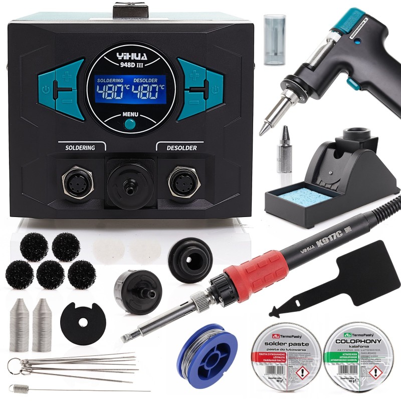 Stacja Lutownicza Rozlutownicza Yihua 948D-III Zestaw Pasta Kalafonia Cyna