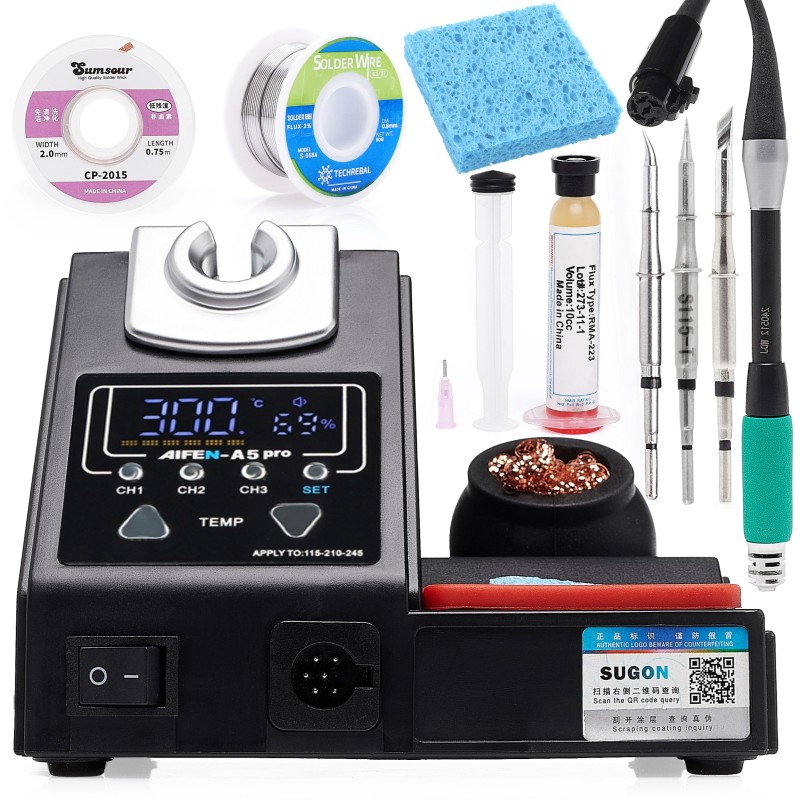 Profesjonalna Stacja Lutownicza Aifen A5 Pro 3x Grot C115 Plecionka Cyna