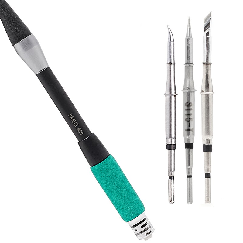 Stacja jest kompatybilna z różnymi grotami, w tym C115, C210 oraz C245, co sprawia, że jest niezwykle wszechstronna i dostosowuje się do różnych potrzeb lutowniczych.