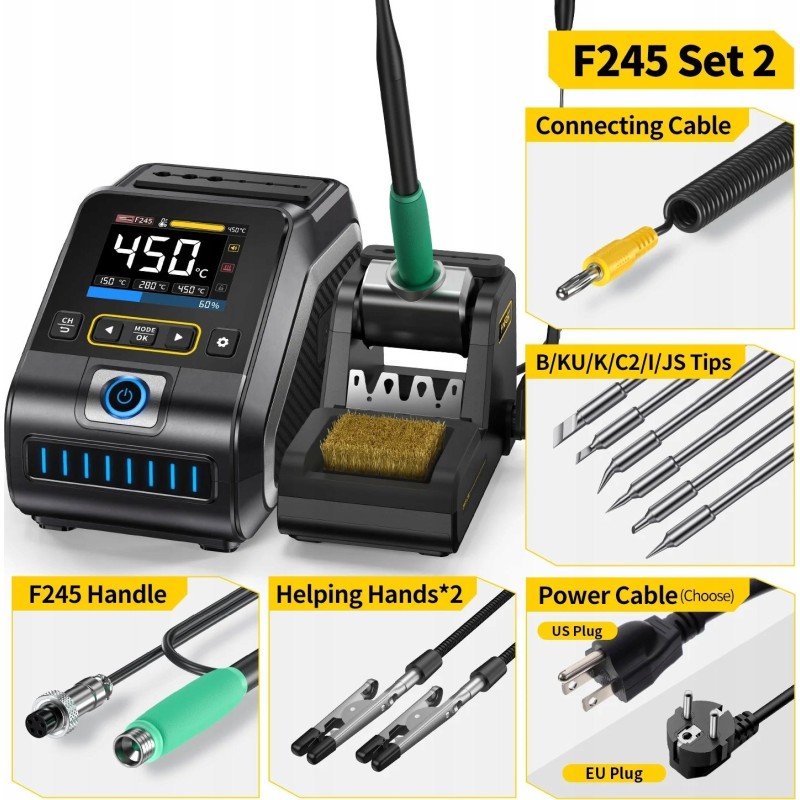 Stacja lutownicza FNIRSI DWS-200 200W ZESTAW 9 GROTÓW + 2 RĄCZKI F210/F245