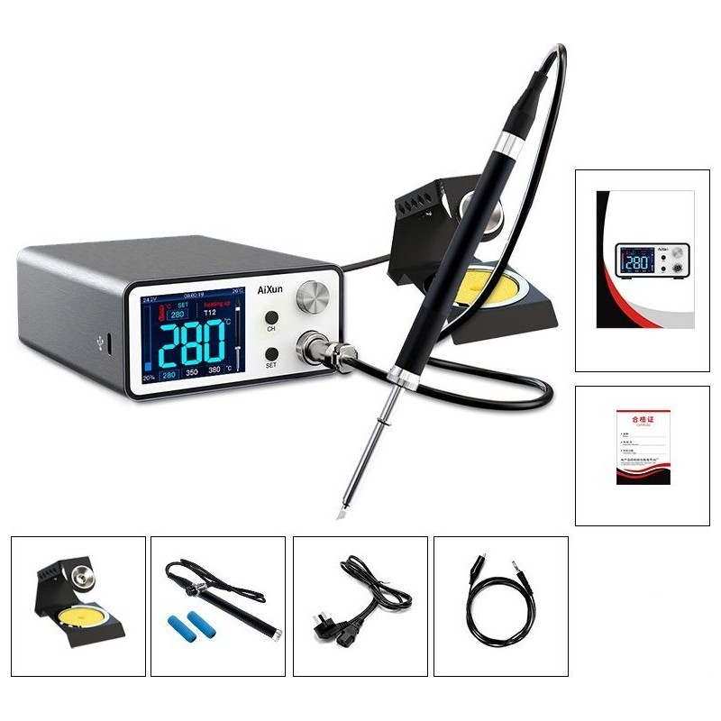 Precyzyjna stacja lutownicza Aixun T3A-T12 z kolbą na groty z wbudowaną grzałką T12 + KIT34