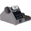 - Precyzyjna regulacja: Jednorazowe przyciśnięcie odpowiedniego przycisku umożliwia zmianę temperatury na grocie o +/- 1 stopień, co pozwala na bardzo dokładne dostosowanie temperatury do wymagań konkretnego zadania lutowania.