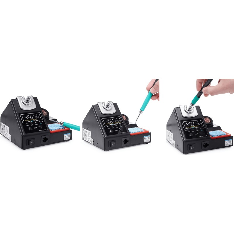 Elegancki i funkcjonalny design stacji lutowniczej grotowej Aifen wyróżnia się nie tylko estetyką, ale także intuicyjnym rozmieszczeniem elementów sterujących. Dzięki lekkiej i kompaktowej konstrukcji urządzenie zajmuje mało miejsca na stanowisku pracy, co ułatwia organizację przestrzeni i zwiększa wygodę użytkowania. Połączenie stylu z praktycznością podnosi komfort pracy.