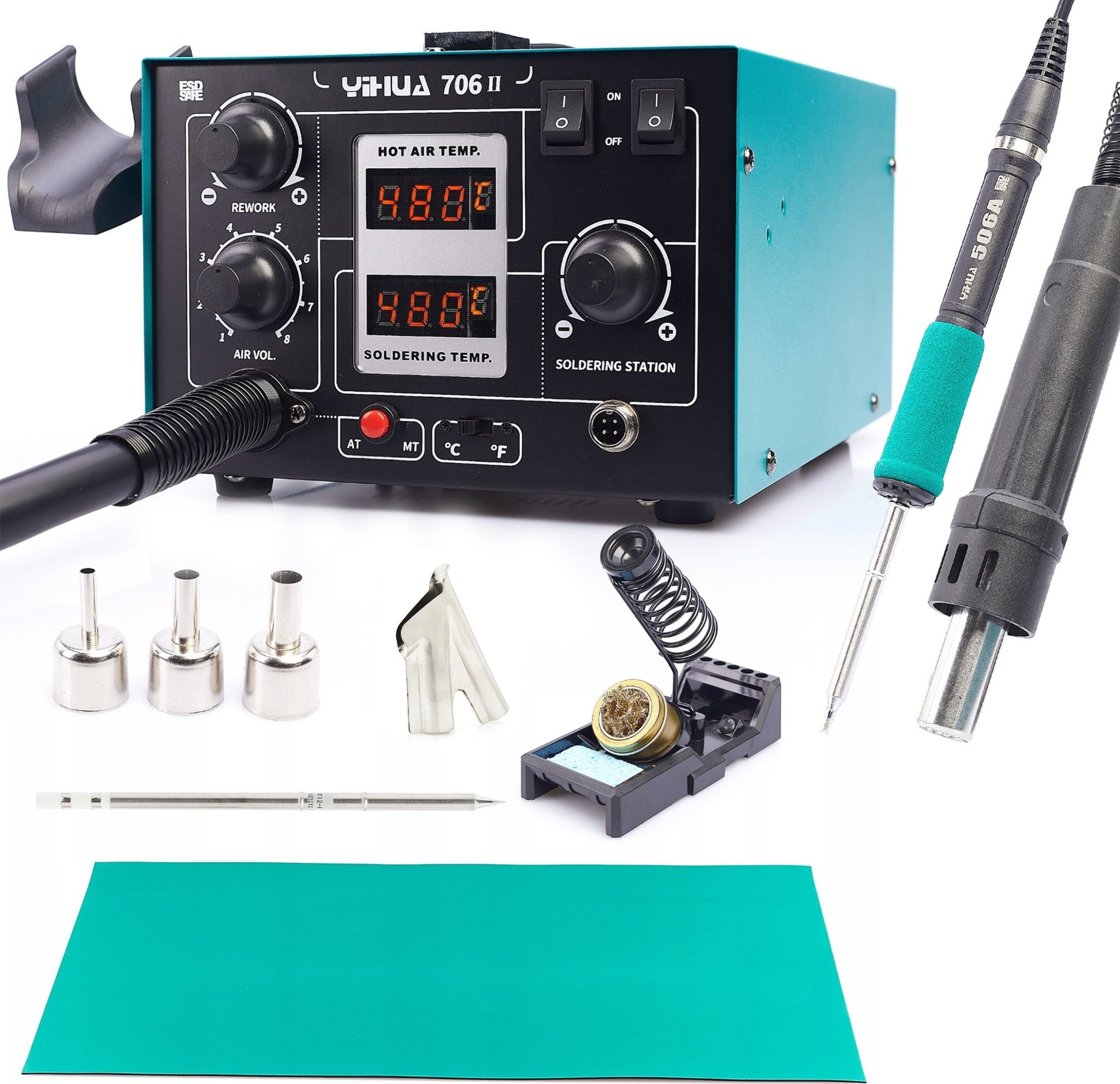 Profesjonalna stacja lutownicza 2w1 Hot-Air 706 II z systemem T12 Yihua i akcesoriami