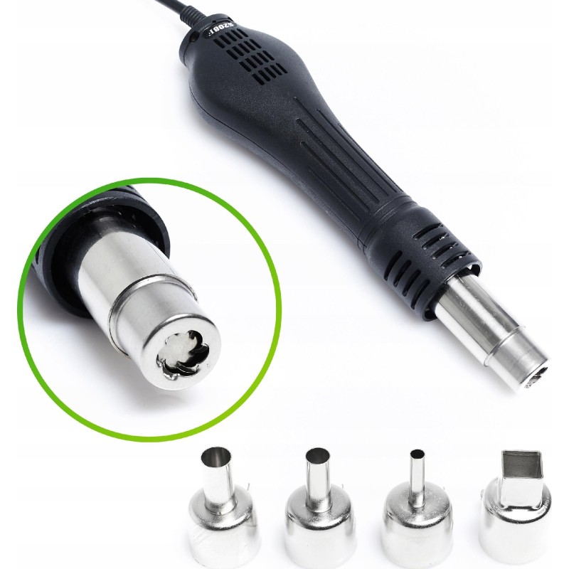 Stacja lutownicza na gorące powietrze (hot-air) oraz lutownicę grotową, urządzenie służy do lutowania i wylutowywania elementów w elektronice, sprawdzi się zarówno dla hobbistów, jak i profesjonalnych warsztatów. Urządzenie charakteryzuje kompaktowa obudowa, która zajmuje niewiele miejsca.