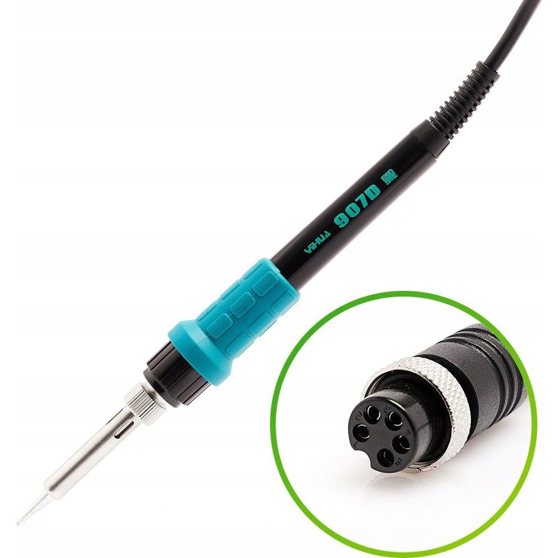 Stacja lutownicza Yihua 937D+ została wyposażona w kolbę 907D, o dużej mocy 75W (MAX 120W) zdolnej szybko nagrzać grot do zadanej temperatury jak również skompensować straty ciepła podczas lutowania. Posiada zabezpieczenie ESD SAFE chroniące elementy elektroniczne przez uszkodzeniem. Wyposażona w wyświetlacz temperatury LED, który pokazuje temperaturę w czasie rzeczywistym. Rączka stacji jest mała i wygodna w chwycie w stacji zastosowano popularny typ grotów 900M, dzięki czemu można w niej zastosować jeden z ponad 30 modeli grotów, również dostępnych na naszych innych aukcjach.