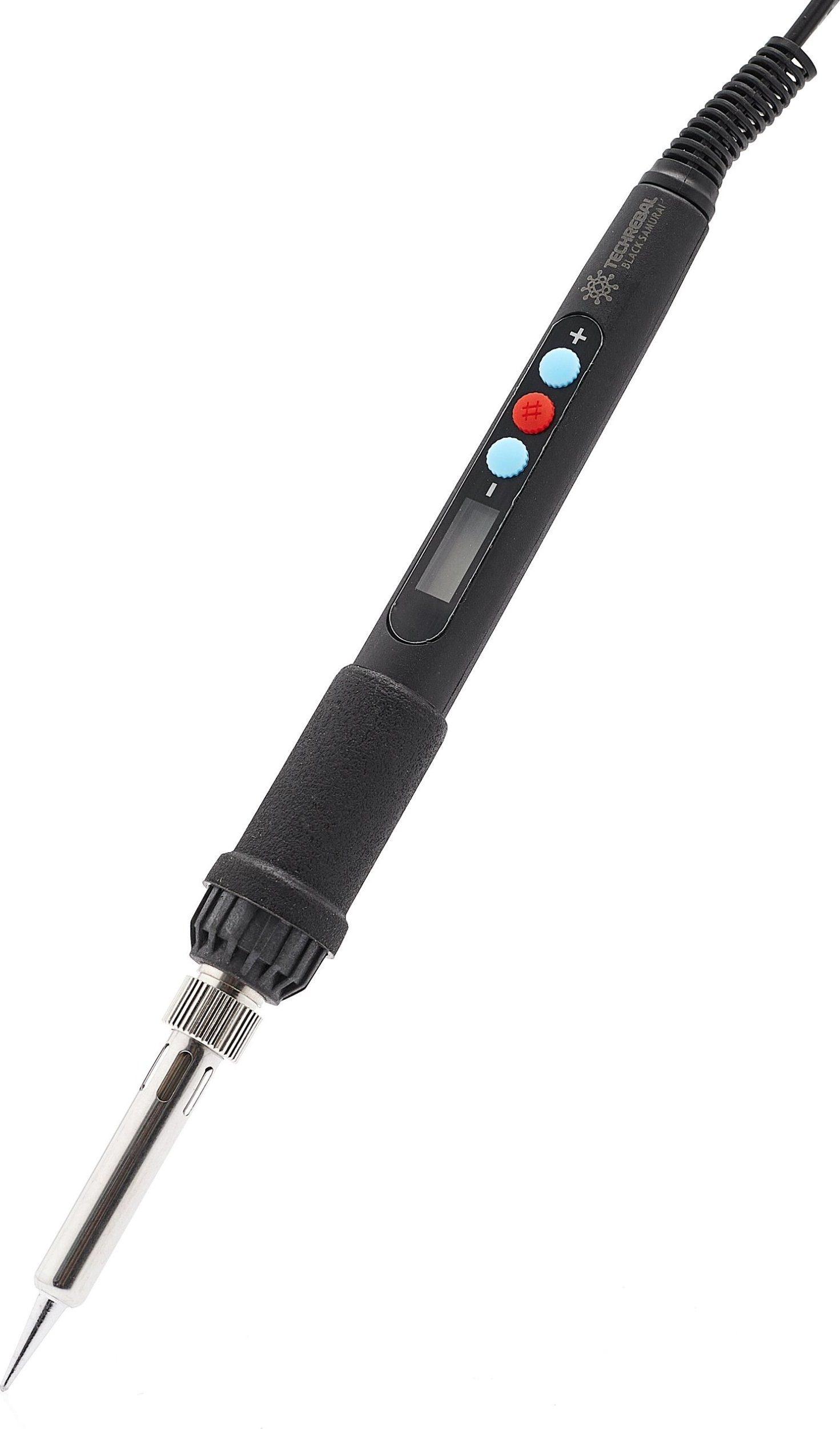 ⚡ Black samurai, czyli flagowa lutownica Techrebal, czarny wojownik który sprawdzi się do większości prac lutownic. Doskonała jakość wykonania połączona z pięknym designem, który zadowoli nawet bardzo wymagającego użytkownika. Profesjonalna, mocna i precyzyjna lutownica 60W z możliwością dostosowywania temperatury w zakresie 180 °C - 500 °C, przenośne urządzenie z dokładnym wyświetlaczem, bardzo szybko nagrzewające się do zadanej temperatury.