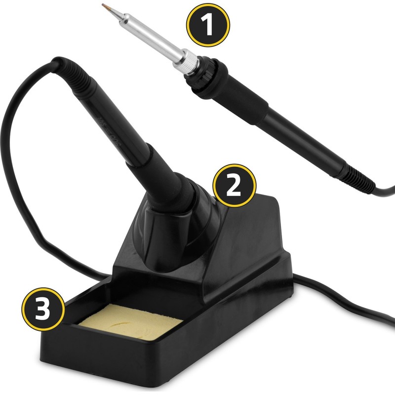 ◾ Uchwyt na kolbę lutowniczą: bezpieczne miejsce do odłożenia gorącej kolby, gdy nie jest używana.