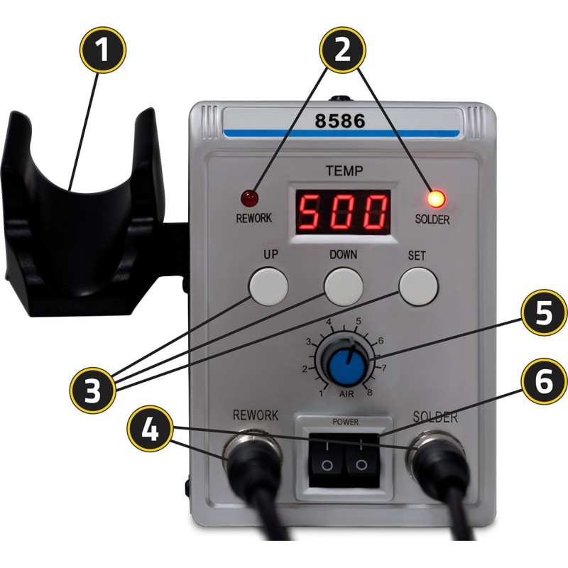 ✔ Stacja gorącego powietrza: 700 W, temperatura: 100-500 stopni C.