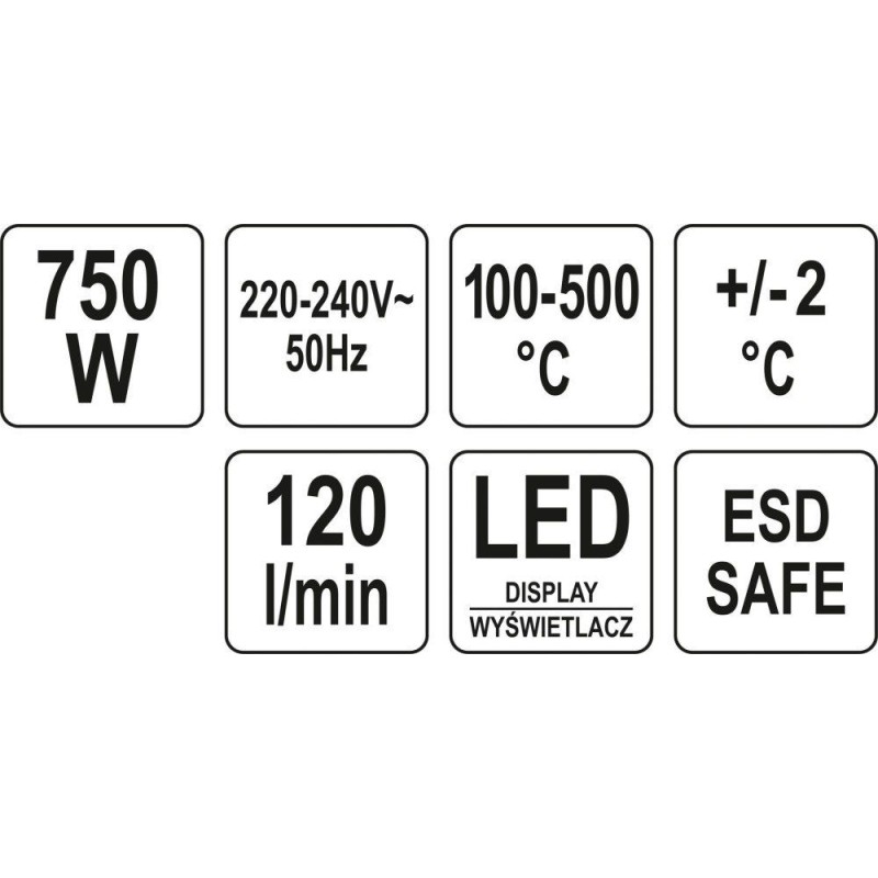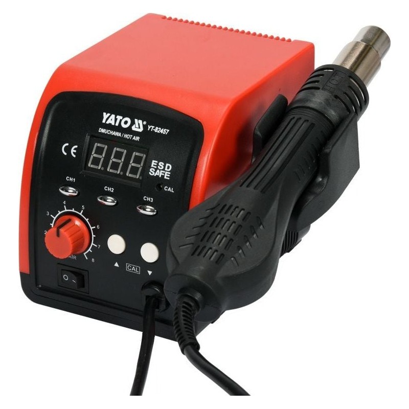 Stacja HOT-AIR gorący nadmuch YT-82457 z cyfrowym wyświetlaczem LED, regulacją temperatury oraz funkcjami poprawiającymi komfort pracy oraz łatwiejsze wykonywanie prawidłowych połączeń lutowniczych. Stacja wyposażona jest w rączkę z nadmuchem napędzanym bezszczotkowym wentylatorem.