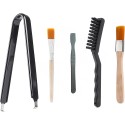 Pędzle antystatyczne oraz inne narzędzia do czyszczenia w zestawie ułatwiają przygotowanie elementów do lutowania oraz utrzymanie porządku w miejscu pracy.