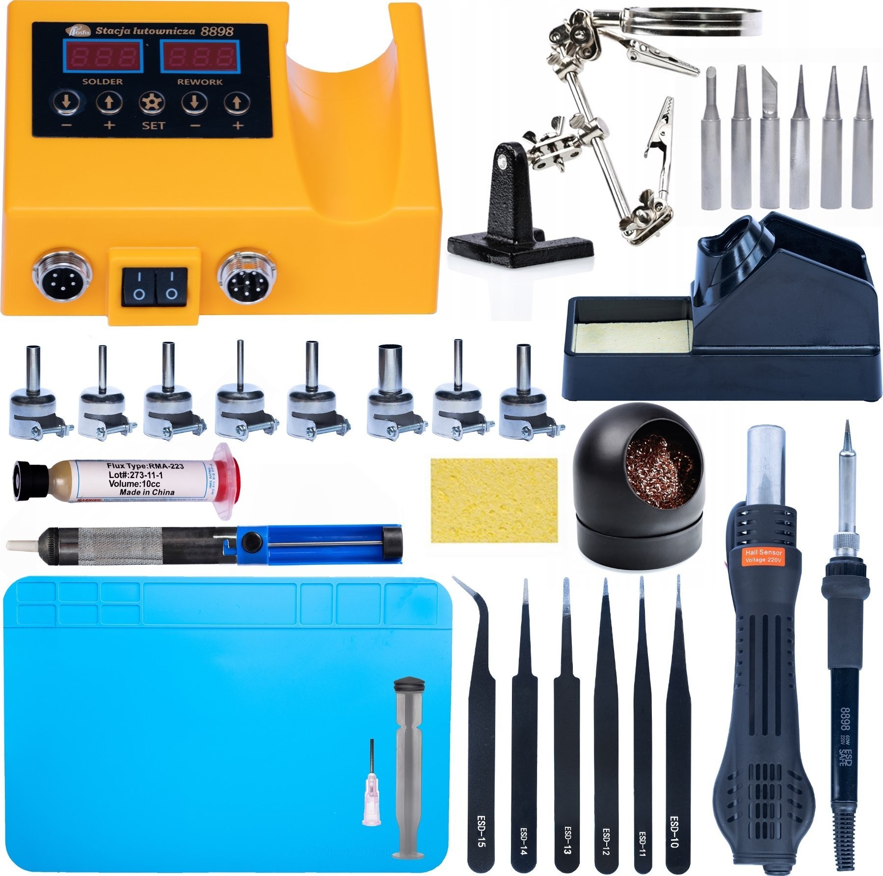 ✅ Uniwersalność 2w1: Ta stacja lutownicza łączy dwie ważne funkcje - lutownicę na gorące powietrze (Hot-Air) i lutownicę z grotem 900M. Dzięki temu narzędziu masz kompleksowe rozwiązanie do różnych zadań lutowania.