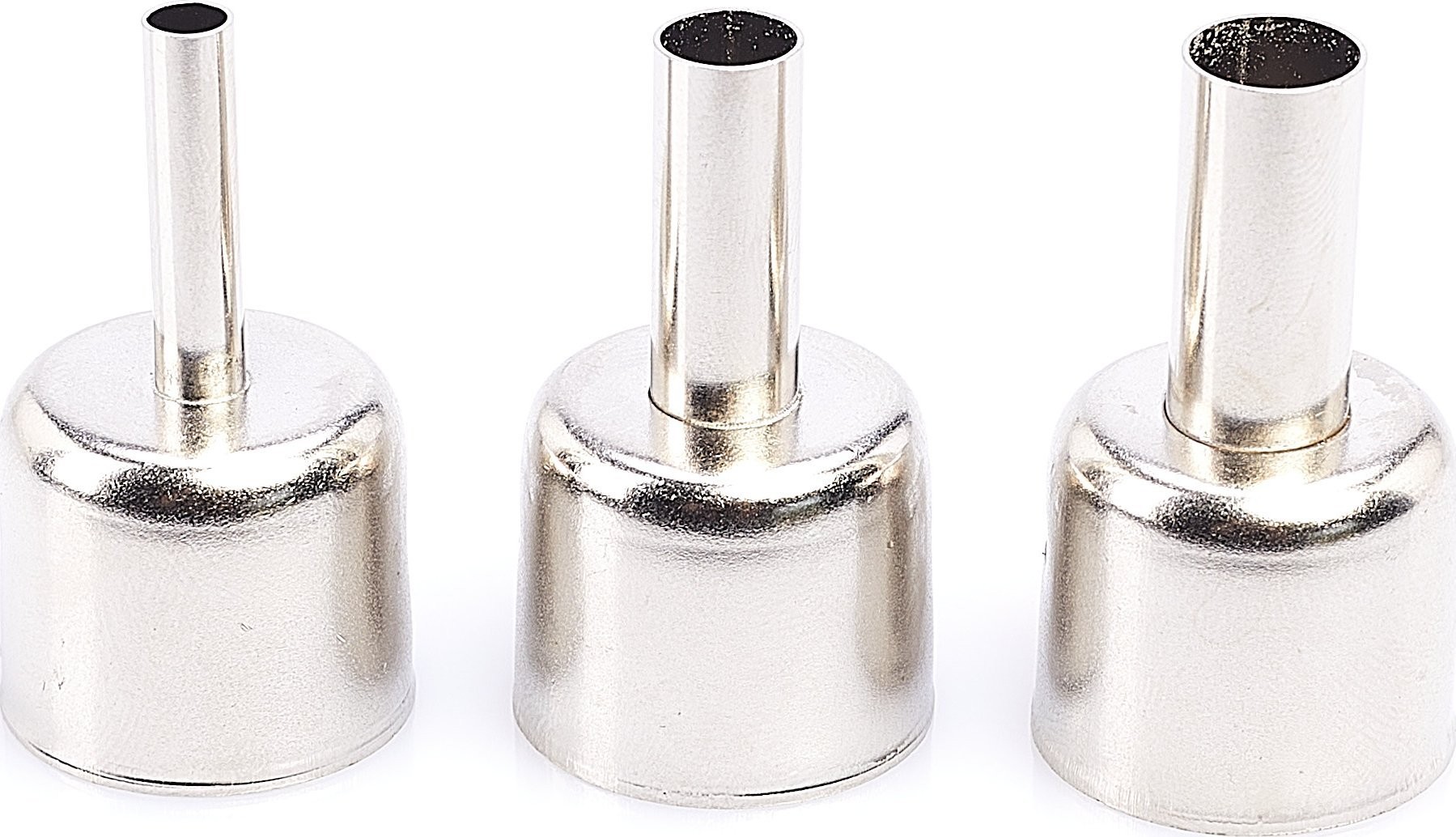 ⚡ Ten profesjonalny zestaw trzech dysz do stacji lutowniczych na gorące powietrze zapewni Ci wszechstronne możliwości pracy. Zestaw zawiera trzy dysze o różnych średnicach: 5mm, 7mm i 10mm, co umożliwia dostosowanie narzędzia do różnych zadań.