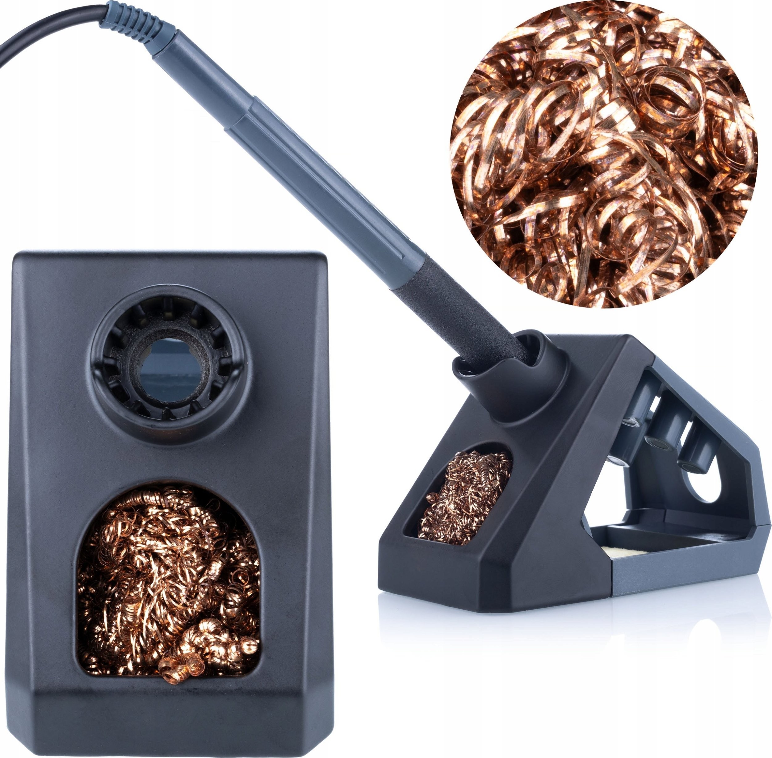 Ta przenośna metalowa stacja lutownicza charakteryzuje się kompaktowym projektem, lekkością i trwałością . Idealna do codziennego użytku.