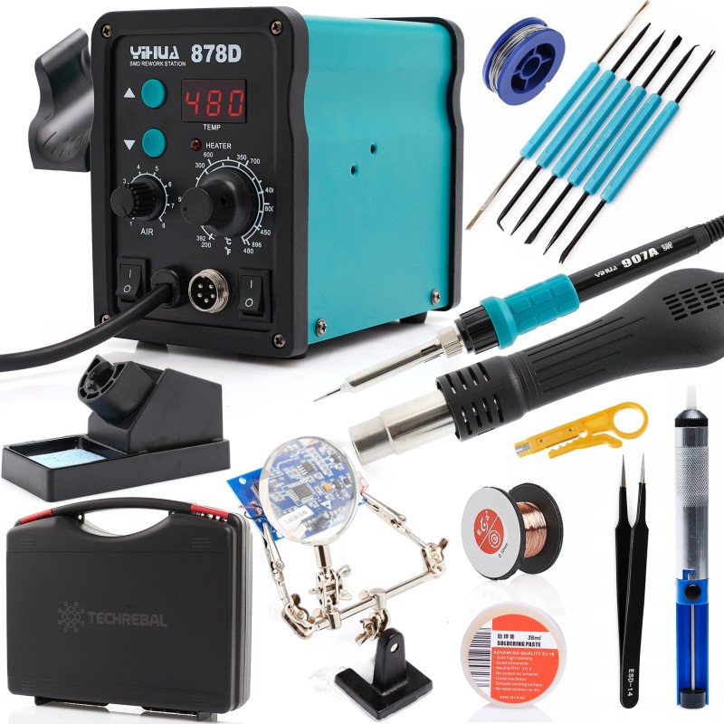 Stacja Lutownicza Hot Air Lutownica 878D Walizka z Narzędziami do Lutowania