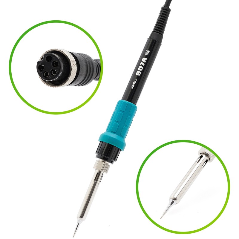 Stacja oferuje precyzyjną regulację temperatury w zakresie od 100 do 480 °C dla gorącego powietrza oraz od 200 do 480 °C dla lutownicy grotowej. Taka elastyczność umożliwia dostosowanie ustawień do różnych materiałów i technik lutowania.