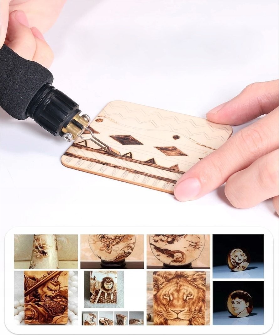 Wypalarka posiada nieograniczoną liczbę możliwości, można ozdobić nią prawie każdy przedmiot np.: sprzęty kuchenne, zabawki, kasetki, skrzyneczki, pudełka albo tez robić samemu wizytówki na drzwi, zakładki do książki, biżuterię, ozdoby świąteczne, a nawet rysować obrazki czy też portrety.