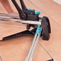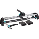 Aluminiowa płyta podstawy jest bardzo stabilna i sztywna. Kółko tnące o średnicy 20 mm z otworem 5 mm wykonane jest z węglika wolframu powlekanego azotkiem tytanu. Długość cięcia to 67 cm, a szerokość 4-14 mm. Idealny rezultat możesz osiągnąć w 3 krokach: ustaw grubość płytki i siłę nacisku, wykonaj gładkie cięcie i bez wysiłku przełam płytkę. Urządzenie jest łatwe w konserwacji i bardzo precyzyjne dzięki łożyskom kulkowym i szynom o profilu C, a także specjalnej prowadnicy do cięć po przekątnej.