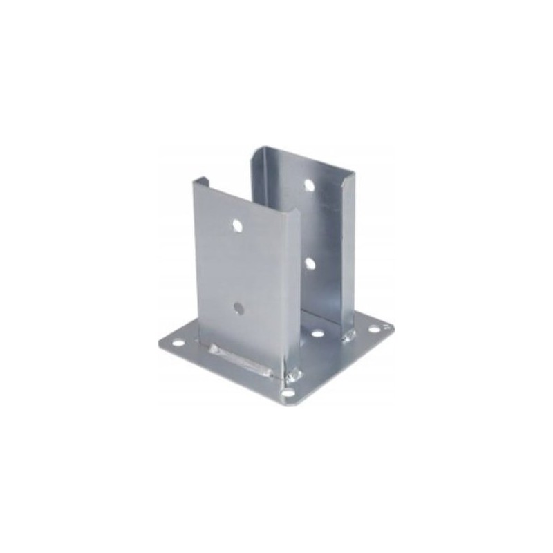 Podstawa słupa przykręcana do betonu 102x150x2,5mm Podstawa słupa przykręcana do betonu o wymiarach 102x150x2,5 mm to solidne i praktyczne rozwiązanie do montażu różnych konstrukcji w betonie. Dzięki łatwości montażu, wysokiej trwałości i uniwersalności, jest idealnym wyborem dla budownictwa, architektury ogrodowej oraz infrastruktury sportowej i rekreacyjnej. Parametry: ✔ Szerokość: 102mm ✔ Wysokość: 150mm ✔ Materiał : Stal ✔ Powłoka antykorozyjna z cynku galwanicznego. Zalety: ⭐ Wyposażona w odpowiednie otwory na śruby lub kotwy, co ułatwia przytwierdzenie podstawy do betonu i zapewnia stabilne umocowanie. ⭐ Stabilne umocowanie minimalizuje ryzyko przewrócenia się czy przesunięcia konstrukcji, co jest ważne dla bezpieczeństwa użytkowników. ⭐ Szeroki zakres zastosowań sprawia, że produkt jest wszechstronny i może być używany w różnych projektach budowlanych i ogrodowych.