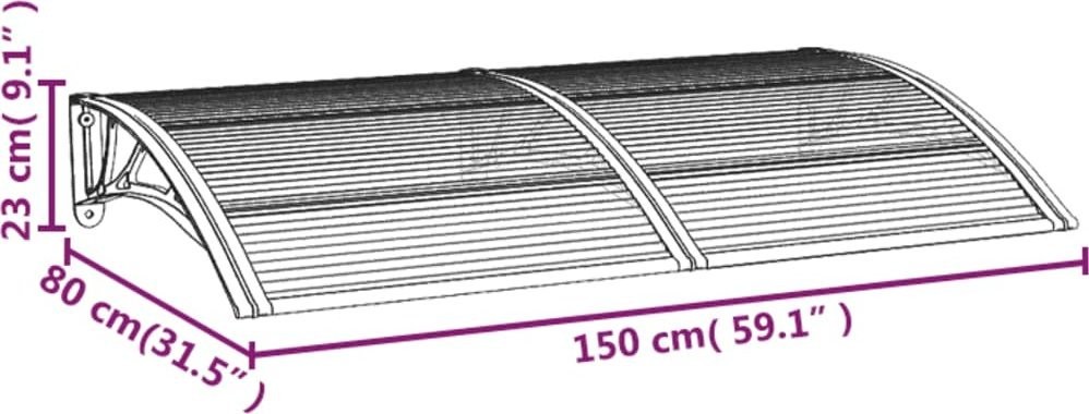 vidaXL Daszek nad drzwi, czarny, 150x80 cm, poliwęglan